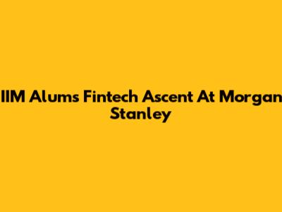 IIM Alum's Fintech Ascent At Morgan Stanley